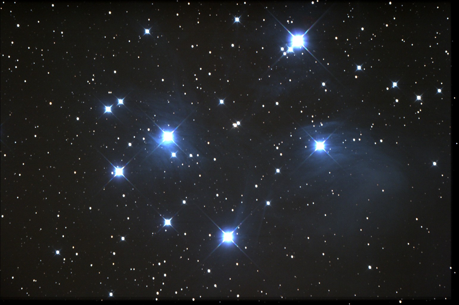 Plejaden: according to the Greek-Saga they represent seven beautiful daughters of Titan Atlas and the Nymph Plejone. Zeuss had placed the seven and their mother in the night-sky to end the painful tracking by Orion. The steady rotation of the sky above keeps Orion in an infinite hunt ....but he will never catch up!