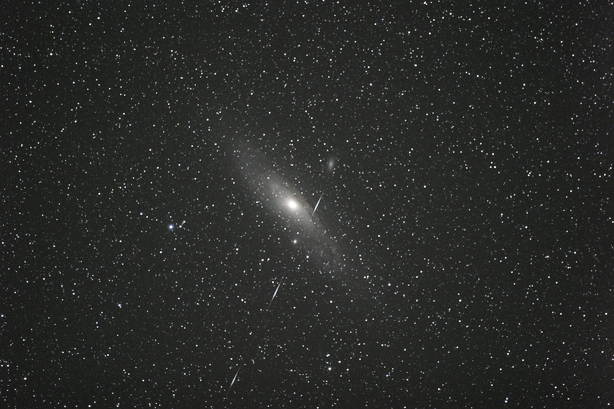 M31 Andromeda with satellite pass (rotating object) / Date: 20050907 / Loc.: HomeOptic: 200mm F2.8 Sigma APO / Camera: D10 800ASA1 Image 4 min minus dark